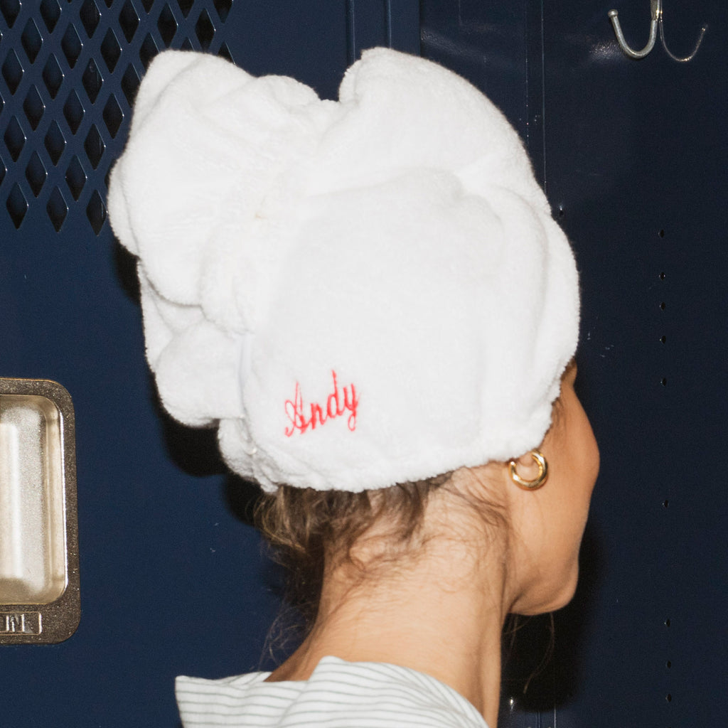 Make prep time a breeze with our Coolidge Hair Towel Wrap. Made from super-soft, zero twist cotton, this wrap gently dries hair and features a button and loop closure, plus elastic trim for a secure fit that keeps your hair perfectly in place while you get ready.
