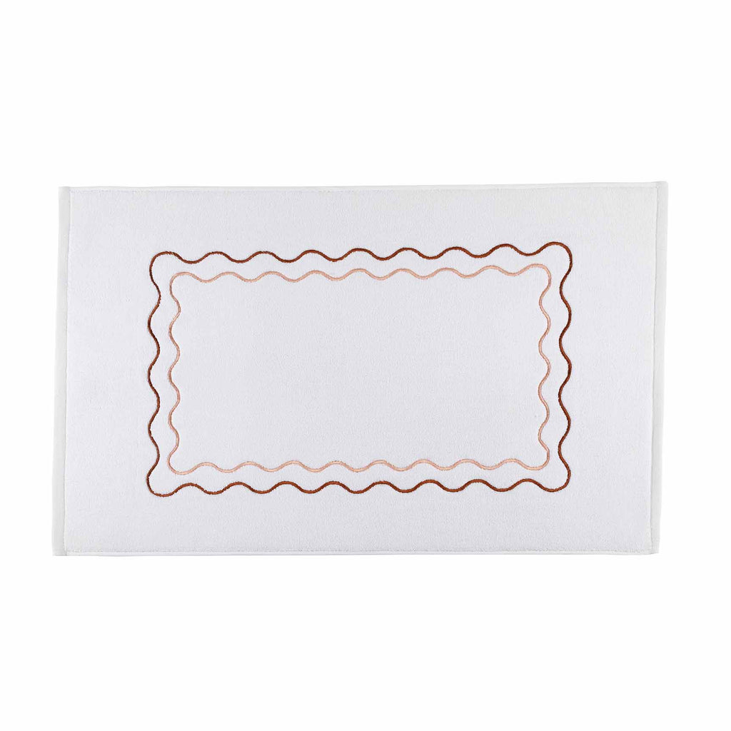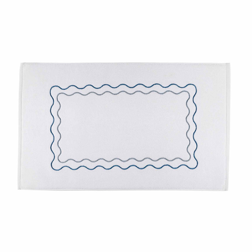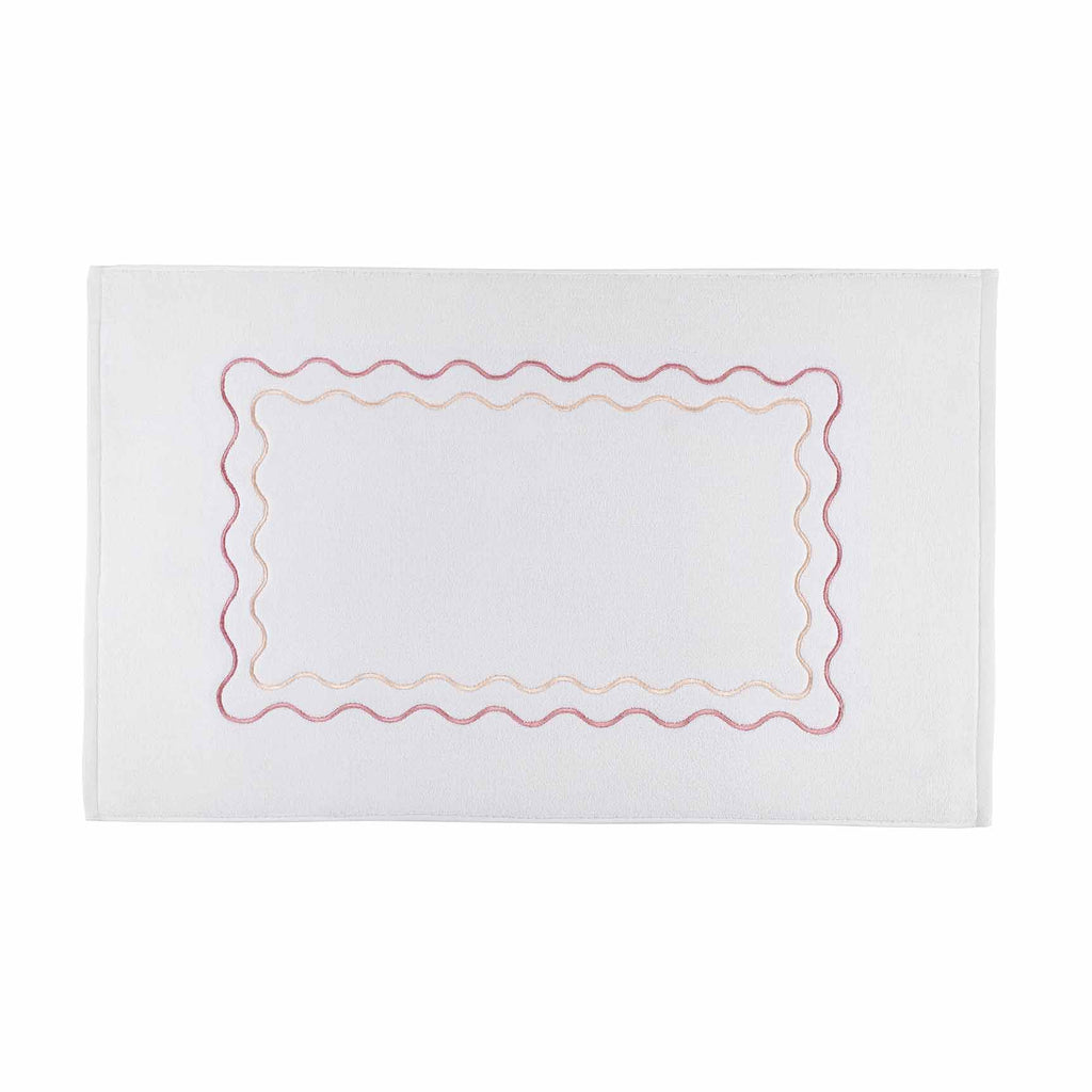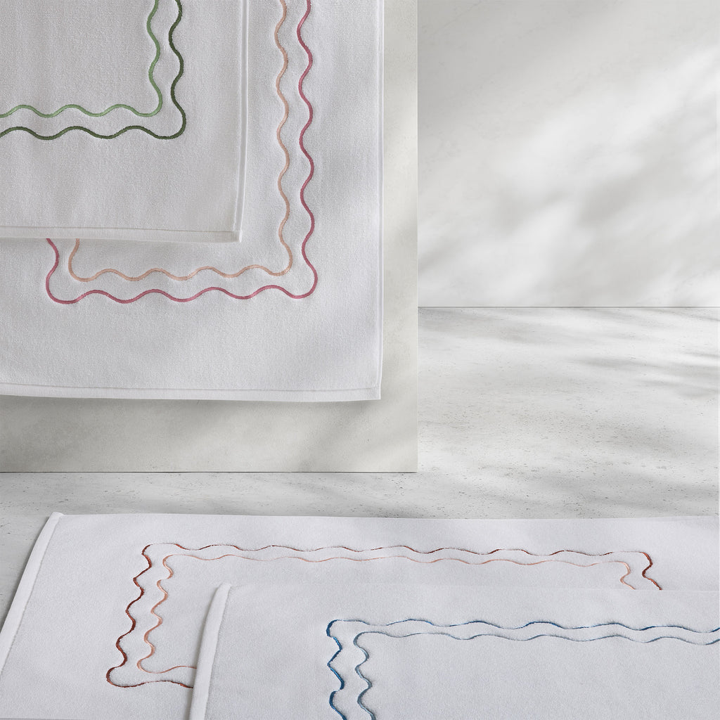 The perfect blend of traditional and trendy, our Wavy Bath Mats are made from 100% zero-twist cotton for an incredibly soft feel and feature a riceweave pattern for subtle texture. Finished with a scalloped border and bright embroidery, these mats bring a touch of playful charm to any bathroom.