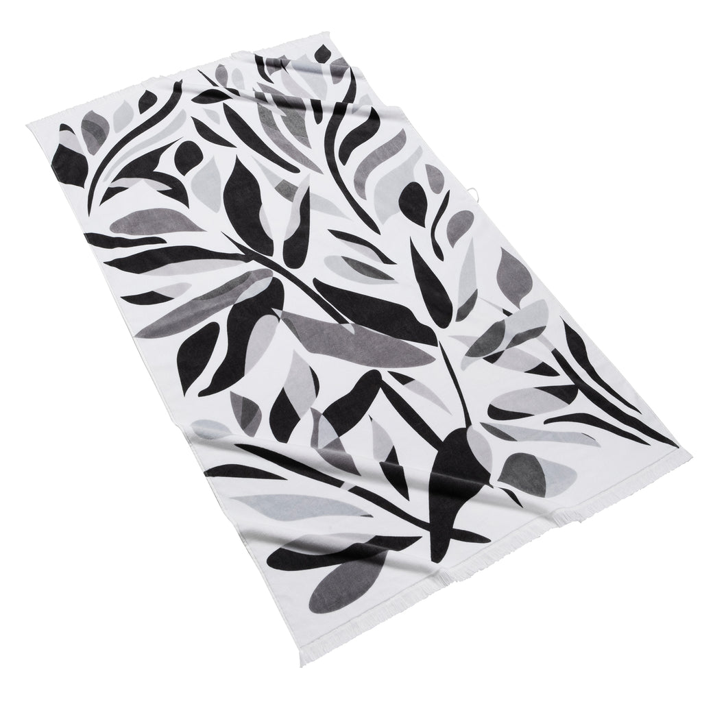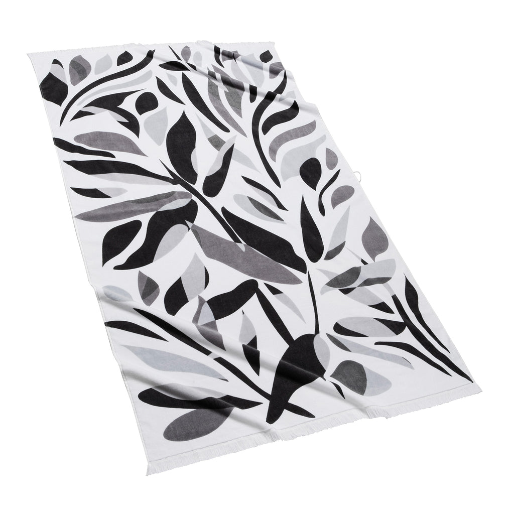 Featuring an abstract floral pattern in shades of grey or blue, our Alameda Beach Towels are finished with eyelash fringe for an extra touch of style.