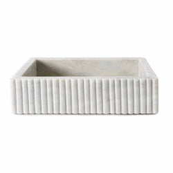 Celebrate Hanukkah with our Beacon Hill Menorah. Meticulously crafted from exquisite fluted marble, this holiday centerpiece features refined ribbed detailing combined with distinctive natural veining. Perfectly balancing tradition with modern sophistication, its graceful design helps to create a warm, inviting atmosphere to observe the Festival of Lights, making each moment truly memorable. Candles are not included.