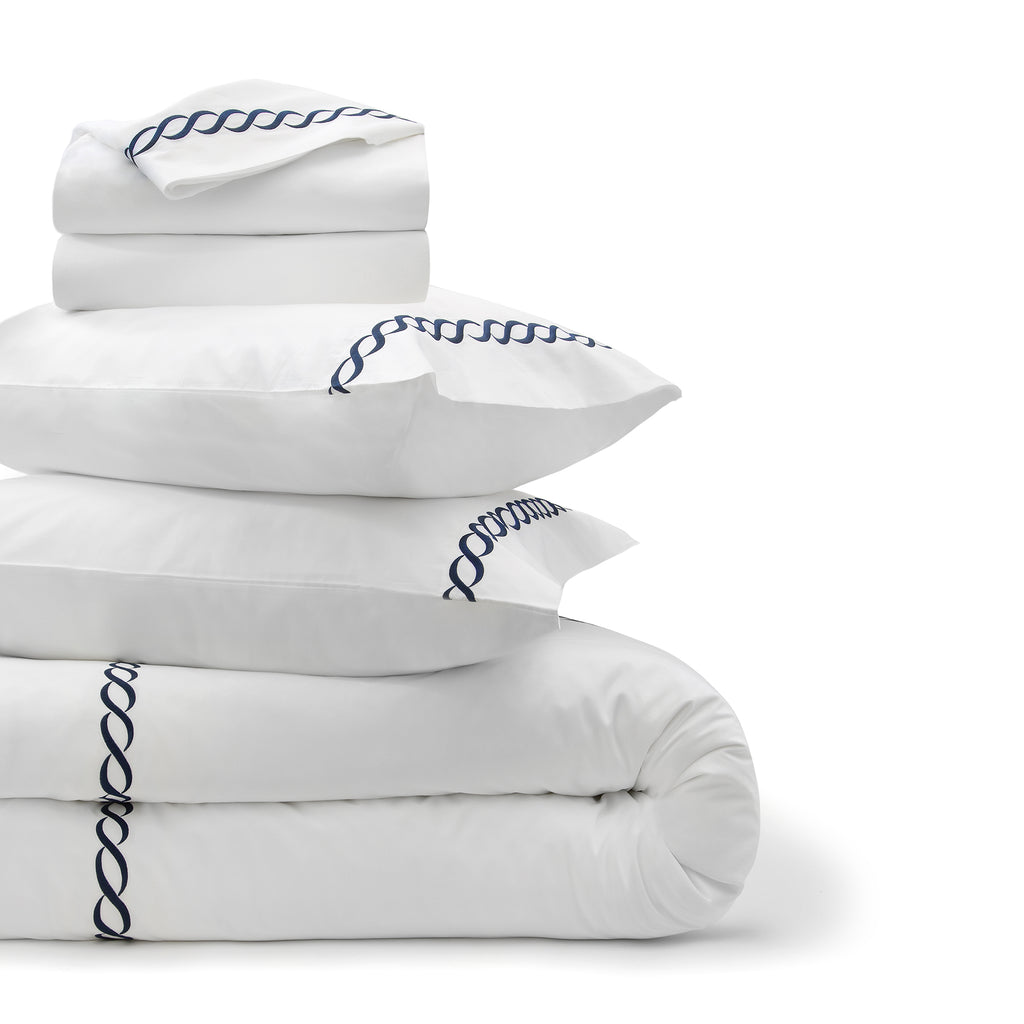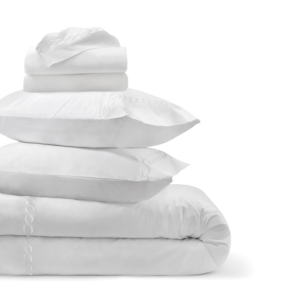 Make putting your bed together easy with our Catena Embroidered Percale Bedding Bundle. This set is made with a proprietary blend of eucalyptus and long staple cotton and exquisitely embroidered with a classic cable design.