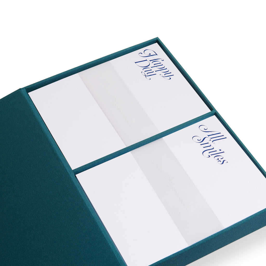Whether it’s a note to self or instructions for the dog walker, bring a little joy to your everyday note-taking with the Cheery Notepads Set. Made with thick, bright white paper in a luxurious smooth finish and printed in Dear Annabelle’s signature Marine ink, they’ll add a little luxury — and a big smile — to every note you jot. Each set includes 4 notepads. Packaged in a Dear Annabelle signature keepsake box.