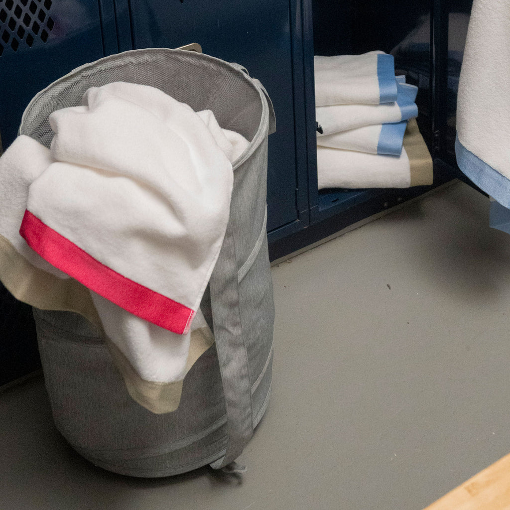This pop-up hamper makes it easy to take your laundry from room to room, it folds flat when not in use and has a handy strap to also carry if needed. It matches all of the other Dormify storage and closet accessories
