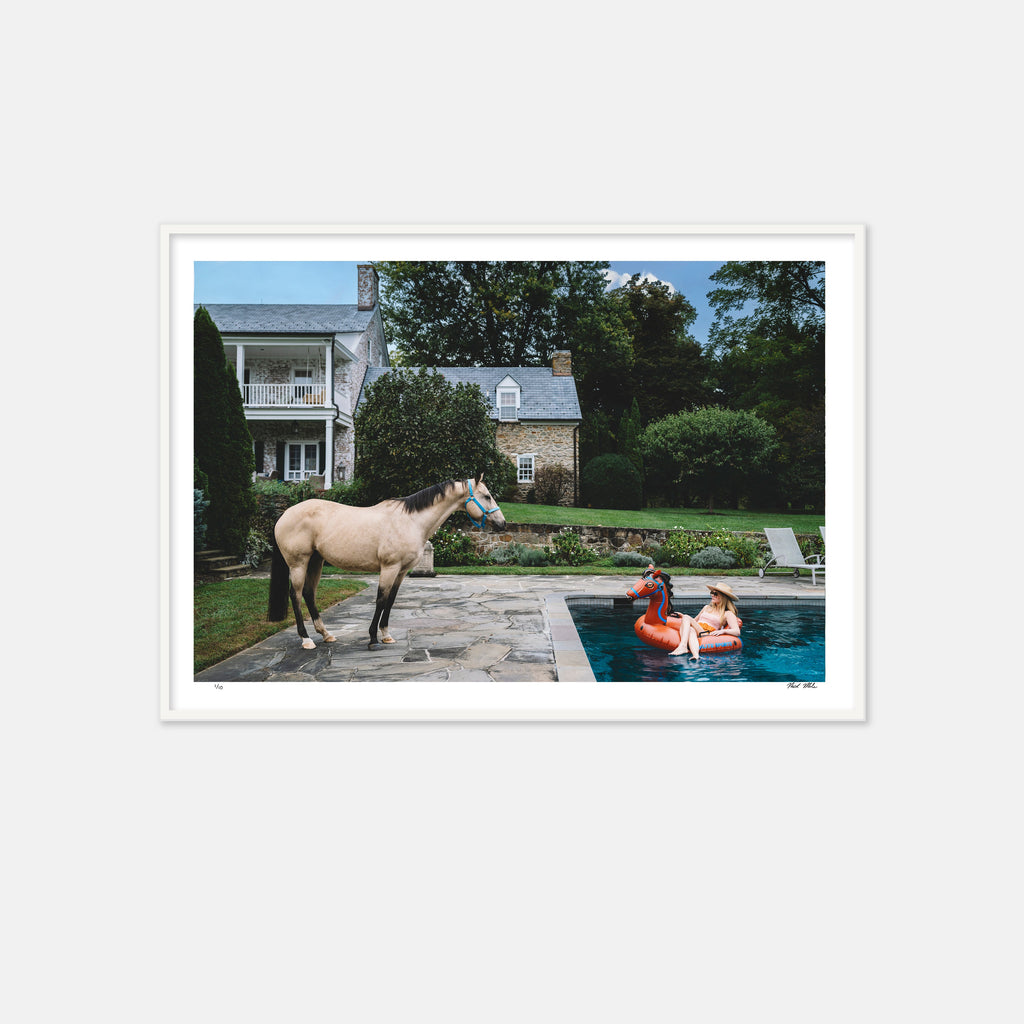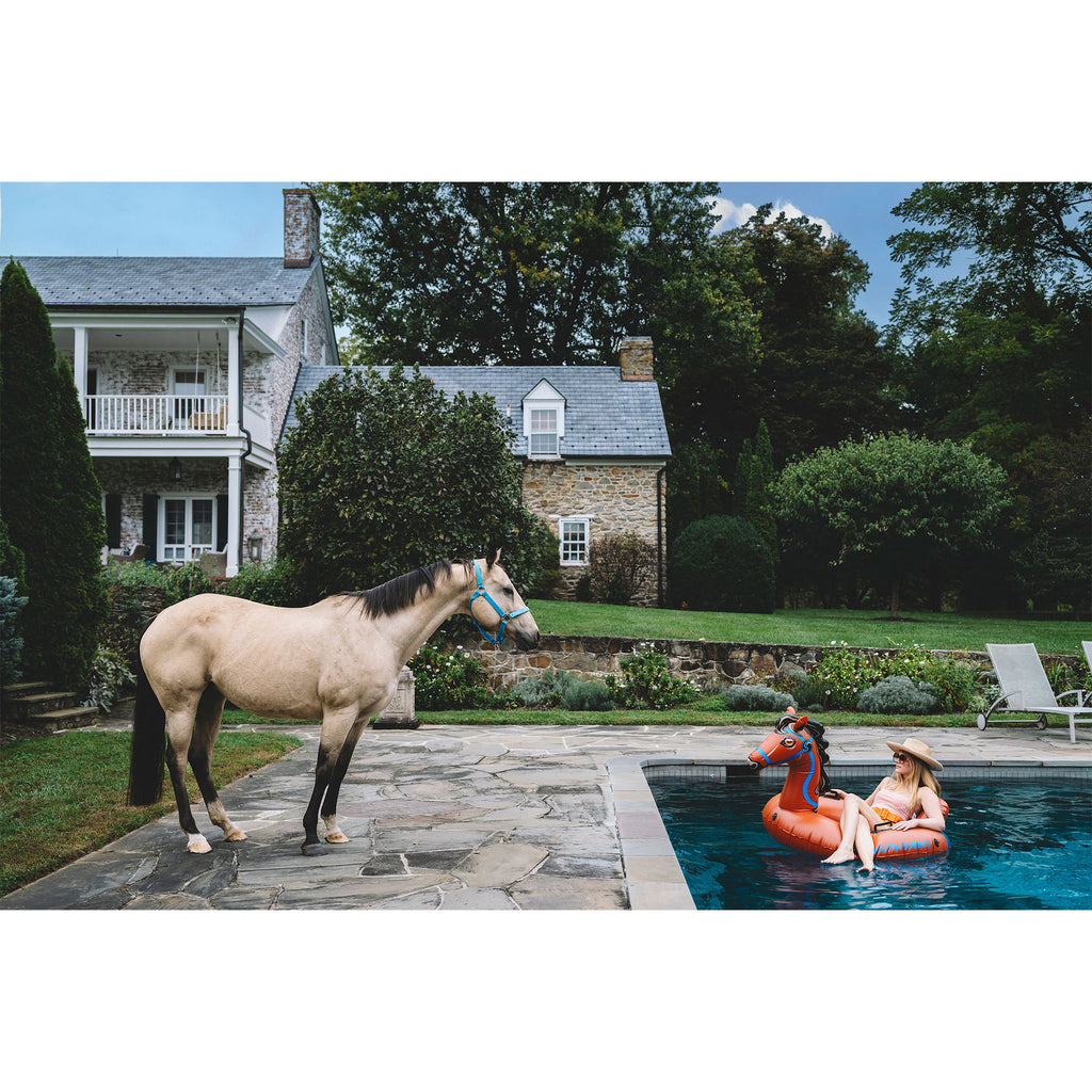 Part of Mele's series titled, “Horsing Around”. The material and imagined scenes share a rarified view of life beyond the hedgerow as viewed through the whit and whim of Mele’s lens.
