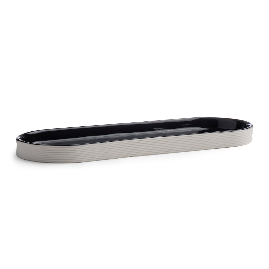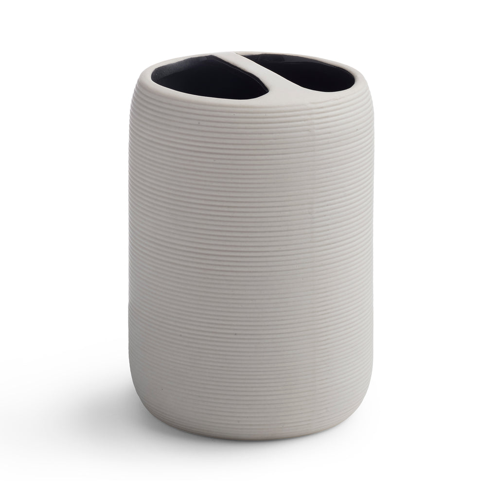 Crafted from porcelain, our Fillmore Bath Accessories feature a ribbed texture. With a muted-ivory hue on the outside and black on the inside, these accessories achieve the ultimate modern look.