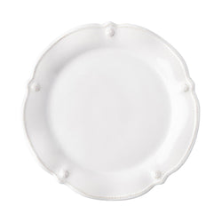 Crafted from white ceramic and adorned with Juliska's signature berry and thread motif, each plate features an elegant flared-scallop edge that adds a refined touch to any table setting. Perfectly sized to showcase all of your culinary creations, this plate combines aesthetic charm with practical use. Dishwasher safe for effortless care and sold individually, allowing you to customize your collection with ease.
