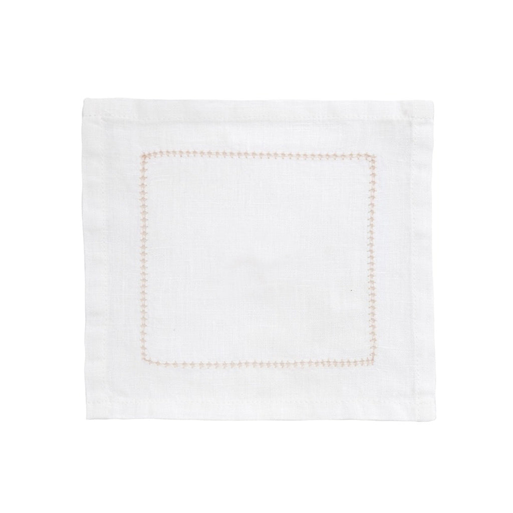 Set of four cocktail napkins, made in Portugal from 100% linen and featuring a delicate hemstitched border.