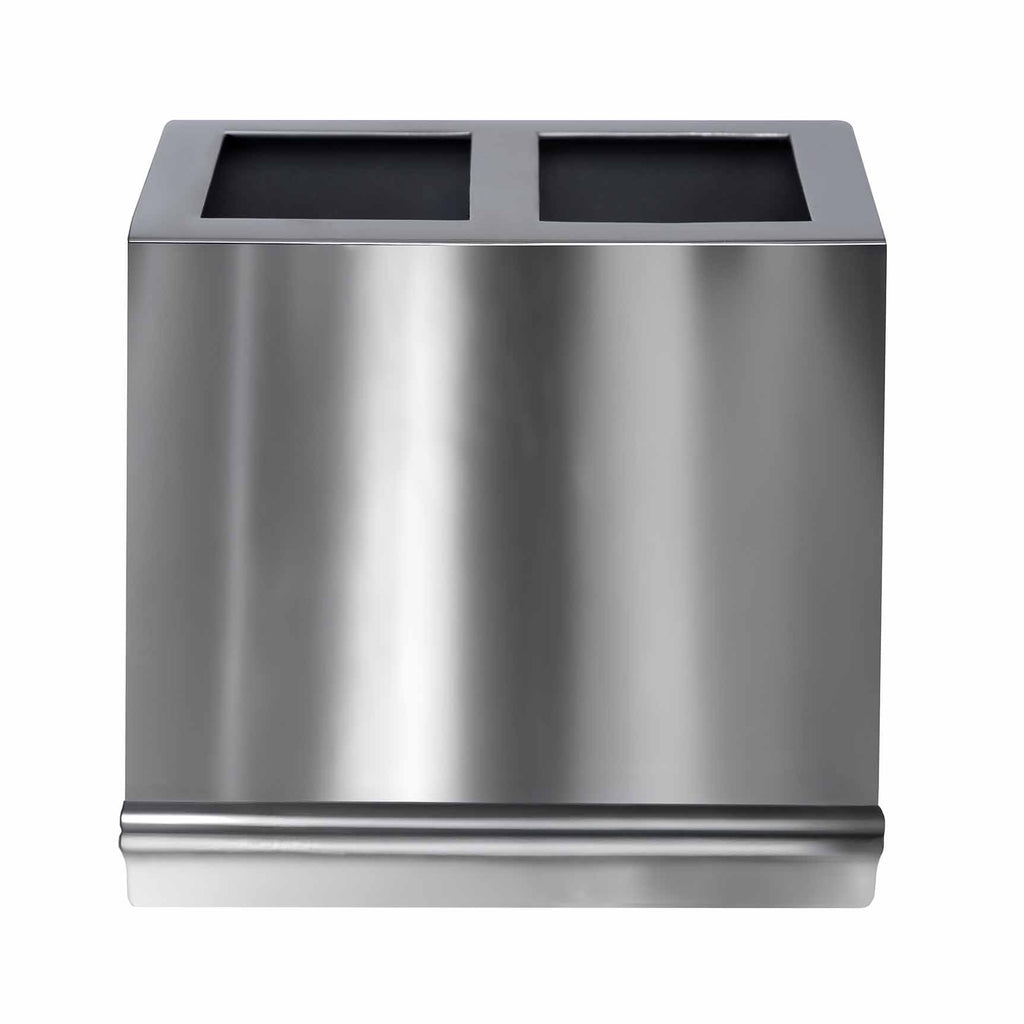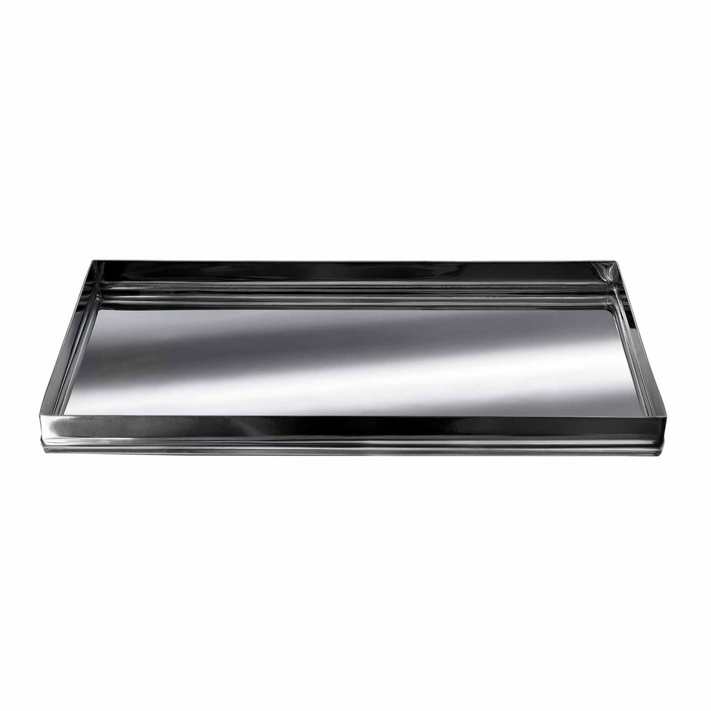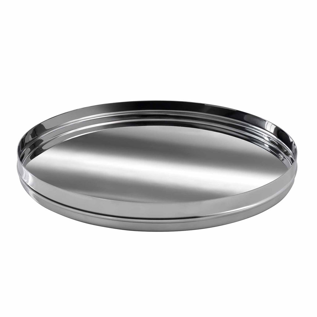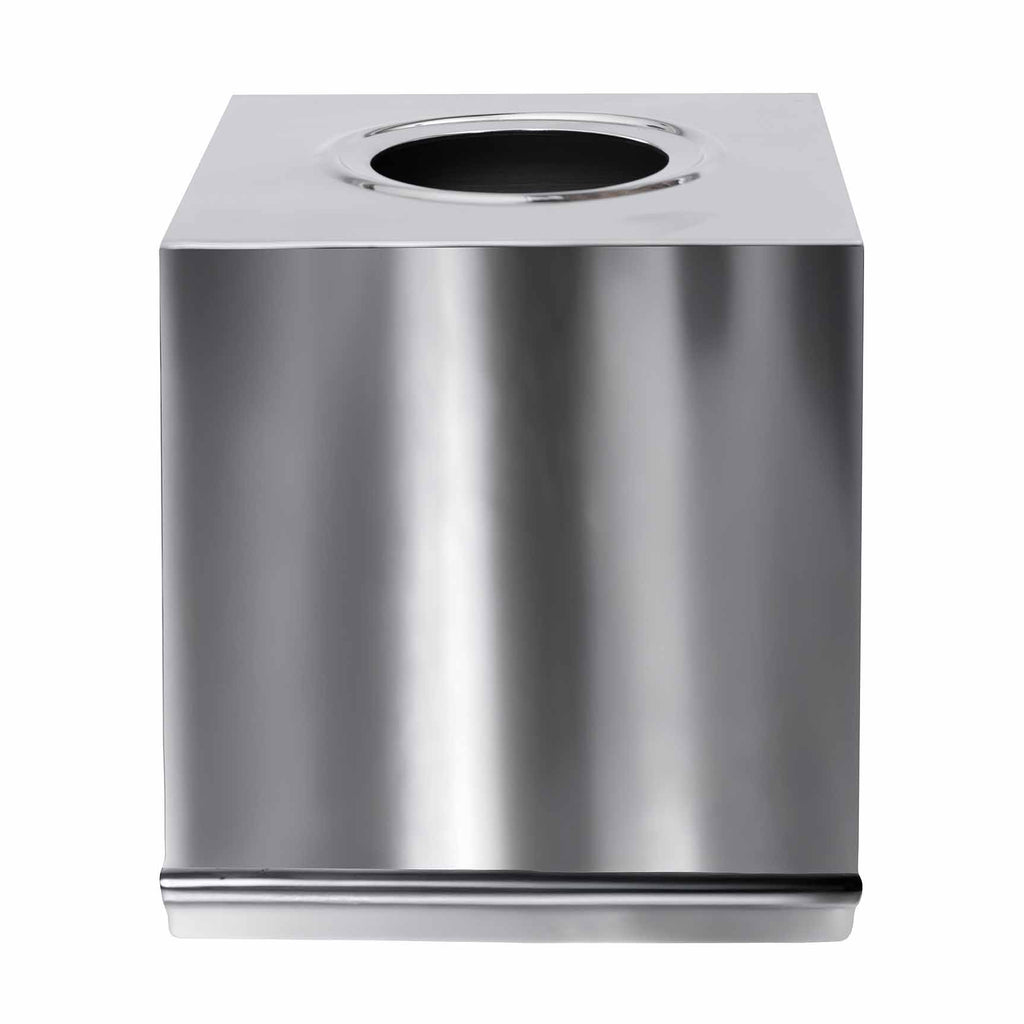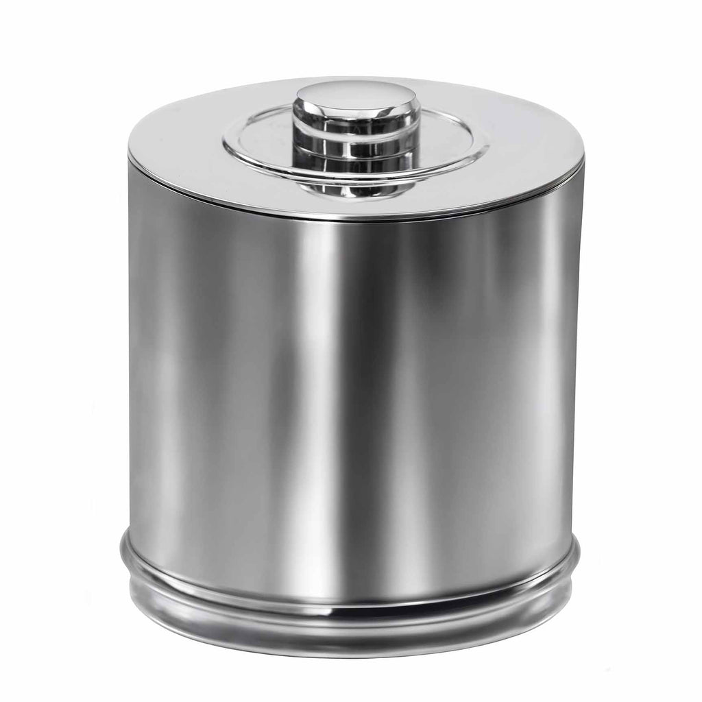Made from stainless steel, our Mulberry Bath Accessories add a sleek shine and vintage-style appeal to the bathroom. Featuring a debossed trim at the base of each collection piece, the tissue holder also features this imprint along the top circle opening and the cotton jar includes this added element along the knob of the jar's lid. This collection also incorporates accessories in varying round and angular shapes for a distinct, yet cohesive look. All collection pieces feature small rounded bumpers to protect countertops. Not dishwasher safe.