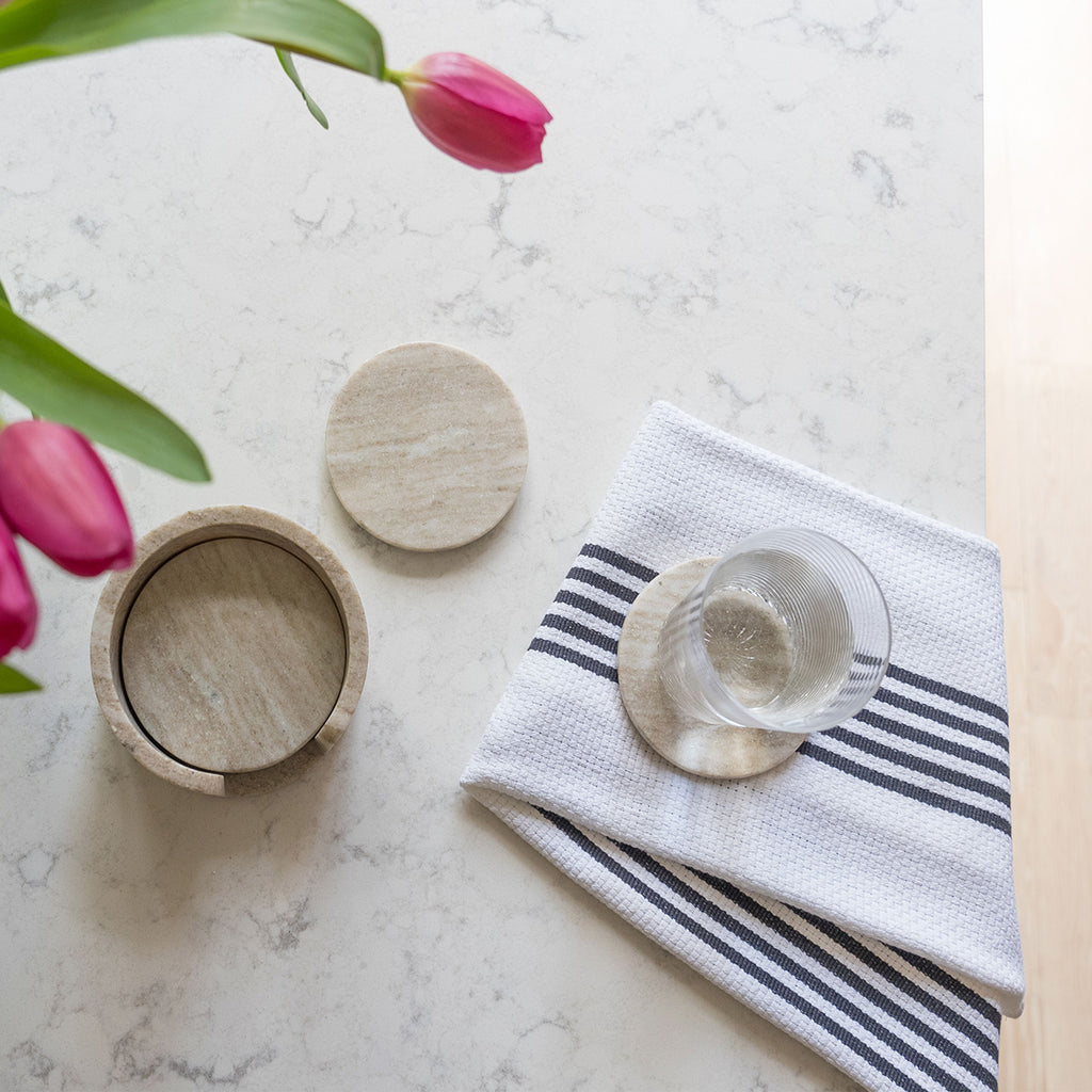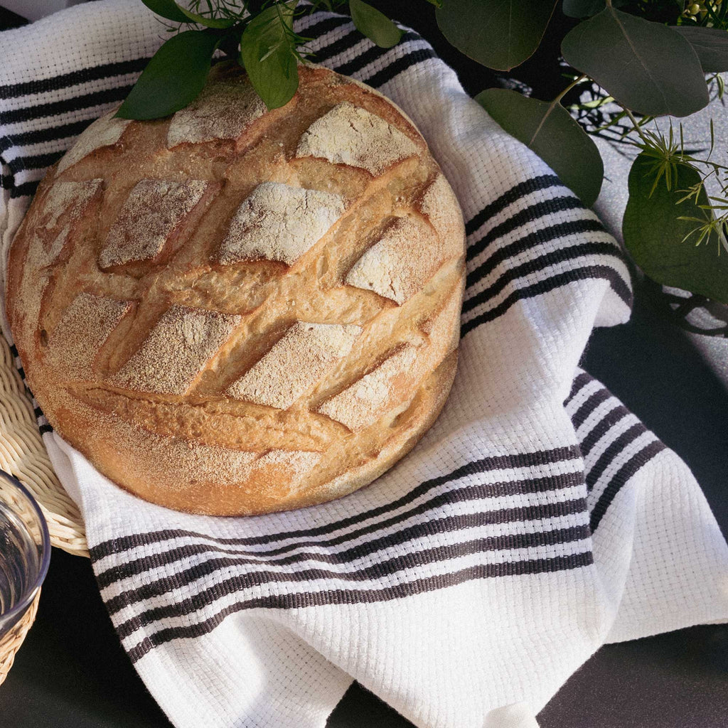 Revising the classic, our Newbury Kitchen towel is flat-woven and made from 100% cotton for absorbency. Featuring a textured weave and traditional stripe pattern, these durable towels offer a classic look that elevates any kitchen. Whether draped by the sink after a long day of cooking or folded and crisp ready to be stacked, the kitchen towel collection bridges nostalgia and utility with finesse.