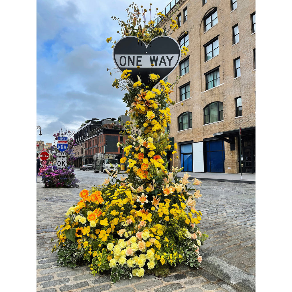 Love is the only way forward. Lewis Miller partnered with West Coast artist Scott Froschauer, to bring you a brighter and happier message in these difficult times, because we all need more love in our lives. LMD selected four of Scott's inspirational street signs and festooned them with fresh flowers and foliage, the final result was a stunning and hopeful work of art that serves as a positive reminder to keep loving, growing, dreaming, and breathing. This ONE WAY print is gorgeous on its own but would also make a wonderful companion to the GROW print. A portion from the sale of this print will be donated to Crossroads Community Services at St. Bartholomew's Church in New York City.