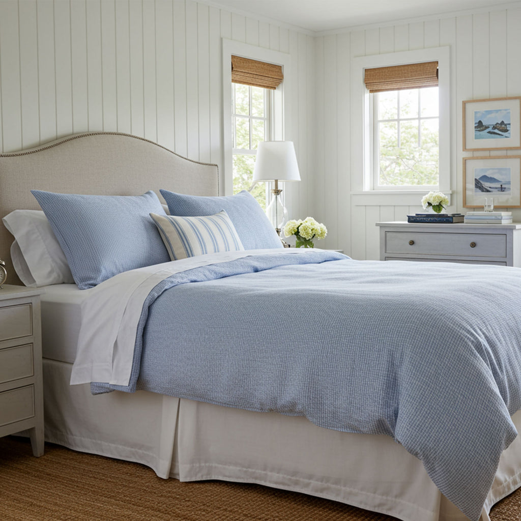 Keep it preppy with our 100% cotton Seersucker Duvet. Exuding a laid-back beach vibe, the classic stripes and subtle texture are featured on both the front and back of this duvet for a look that's fun and playful. Features a hidden-button closure and corner ties to keep your comforter in place.