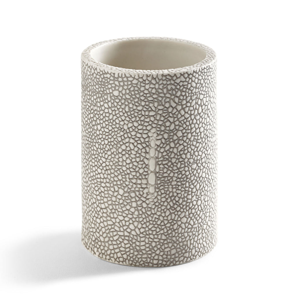 Crafted from fine porcelain and embossed to give the appearance of true shagreen texture, this exotic accessory set brings untamed refinement to the bath.