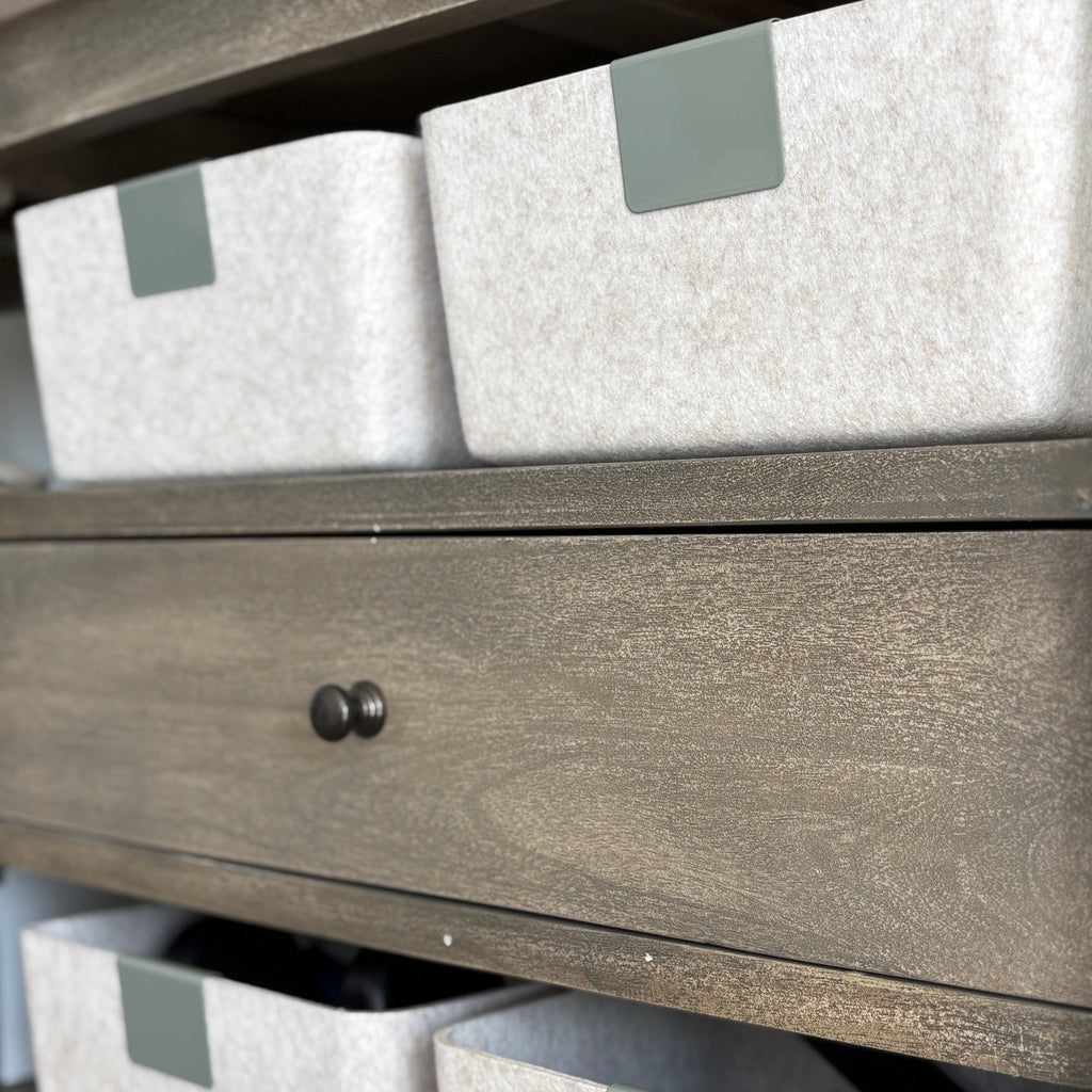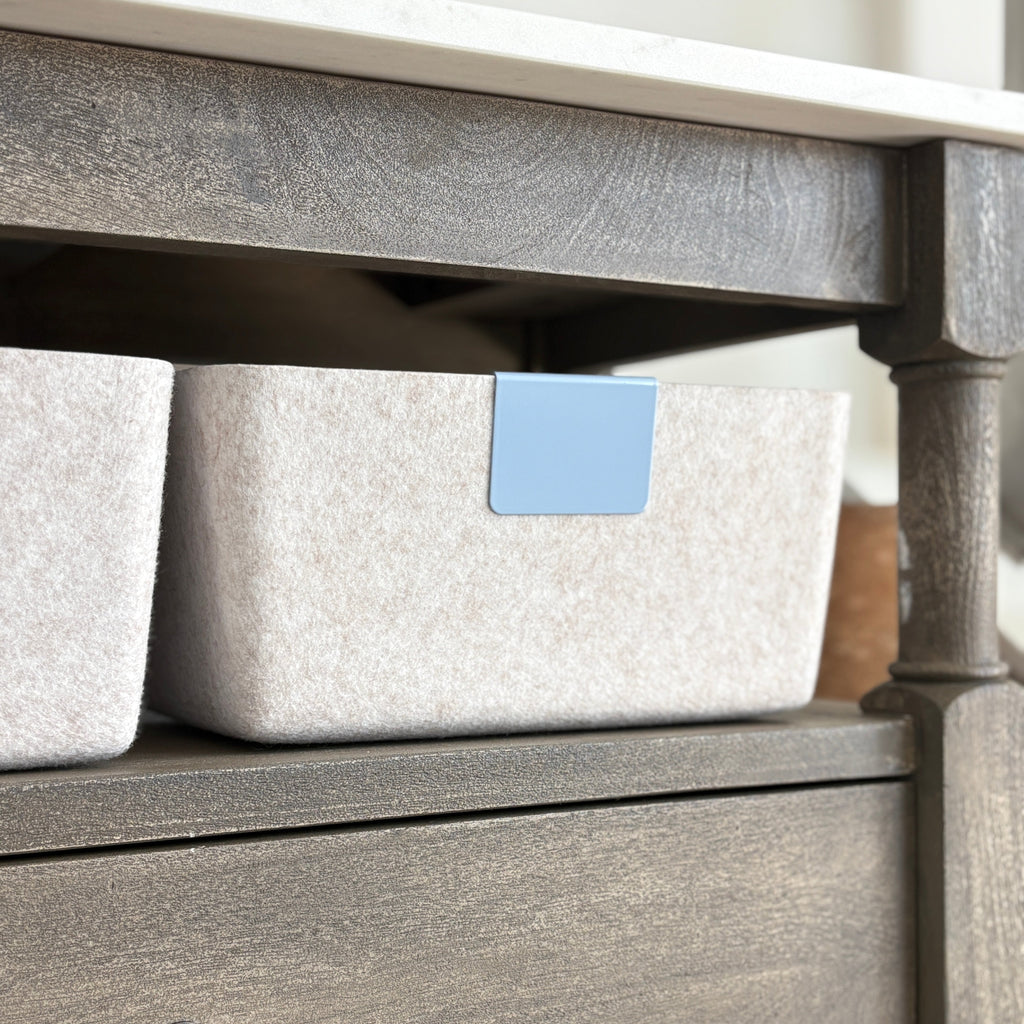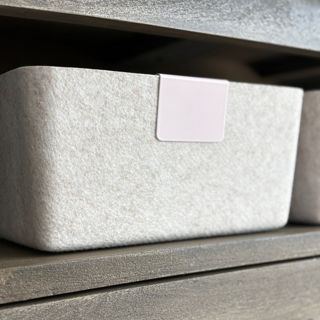 The Label - Clips come with a sturdy metal clip, compatible with our storage bins, lidded bins, and other bins with comparable fabric thickness.