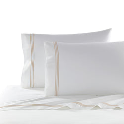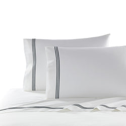 Our best selling percale sheets, made with a proprietary blend of eucalyptus and long staple cotton, get a style update with sleek three stripe embroidery.