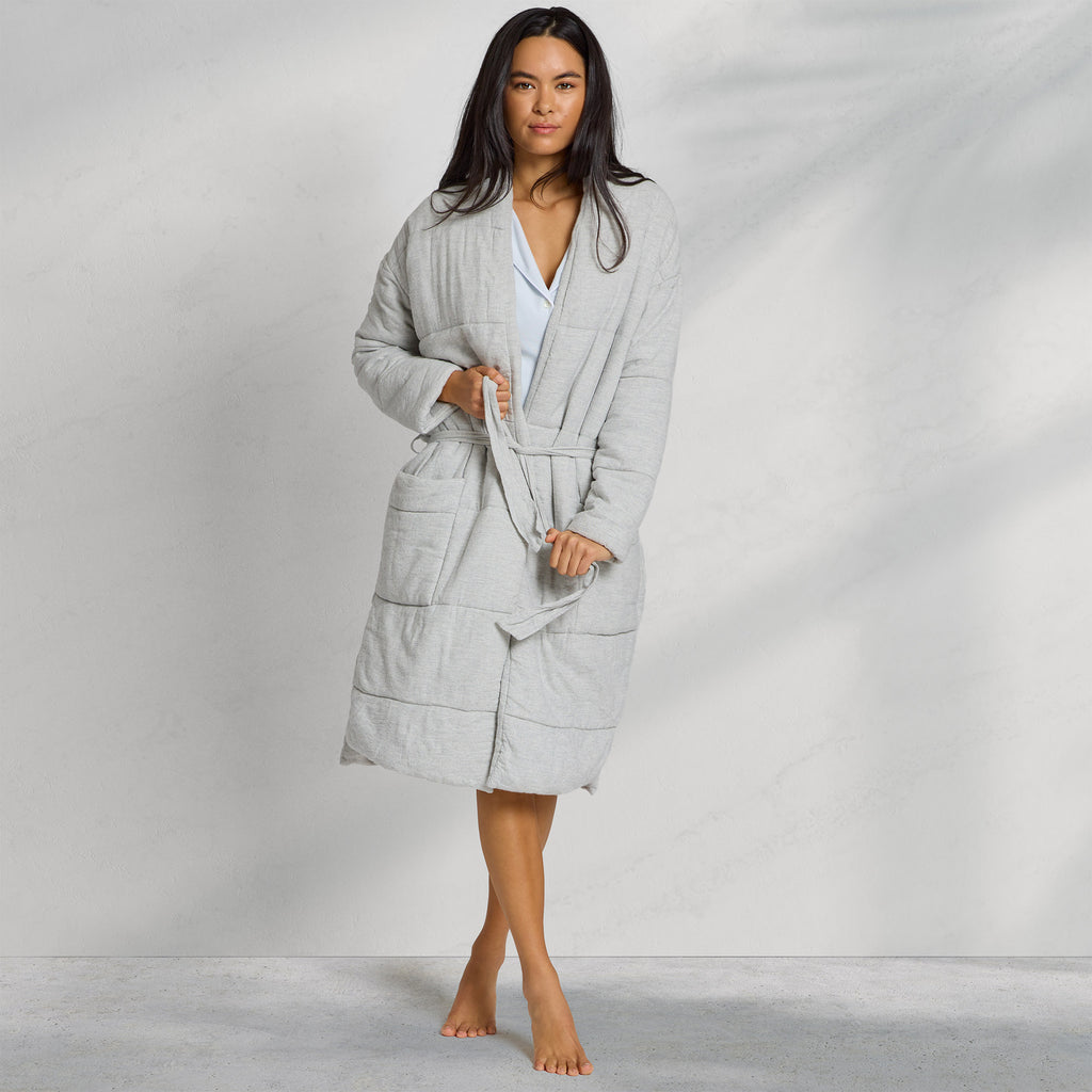 Your favorite fall blanket but as a cozy robe, meet our Quilted Flannel Housecoat. Lightly padded for a fluffy feel and crafted from a comforting cotton-bamboo blend, this is the ultimate layer for hibernating at home. It's also versatile enough to slip on before heading out the door to keep you warm on the go. Features two visible front hip pockets and secure waist tie.